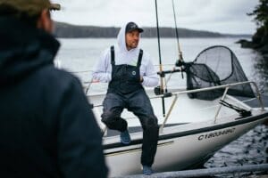 Sowohl Jacke als auch Hose sind auf aktive Tage auf dem Wasser ausgelegt. Wasserdichte YKK AQUAGUARD® Reissverschlüsse schützen zuverlässig vor eindringender Nässe und sind auch bei anspruchsvollen Bedingungen einfach zu bedienen. Praktische Taschenlösungen, robuste Verstärkungen und eine komfortable Passform machen die neue Taku-Kollektion zu einer vielseitigen Begleitung für Segler und Fischer.