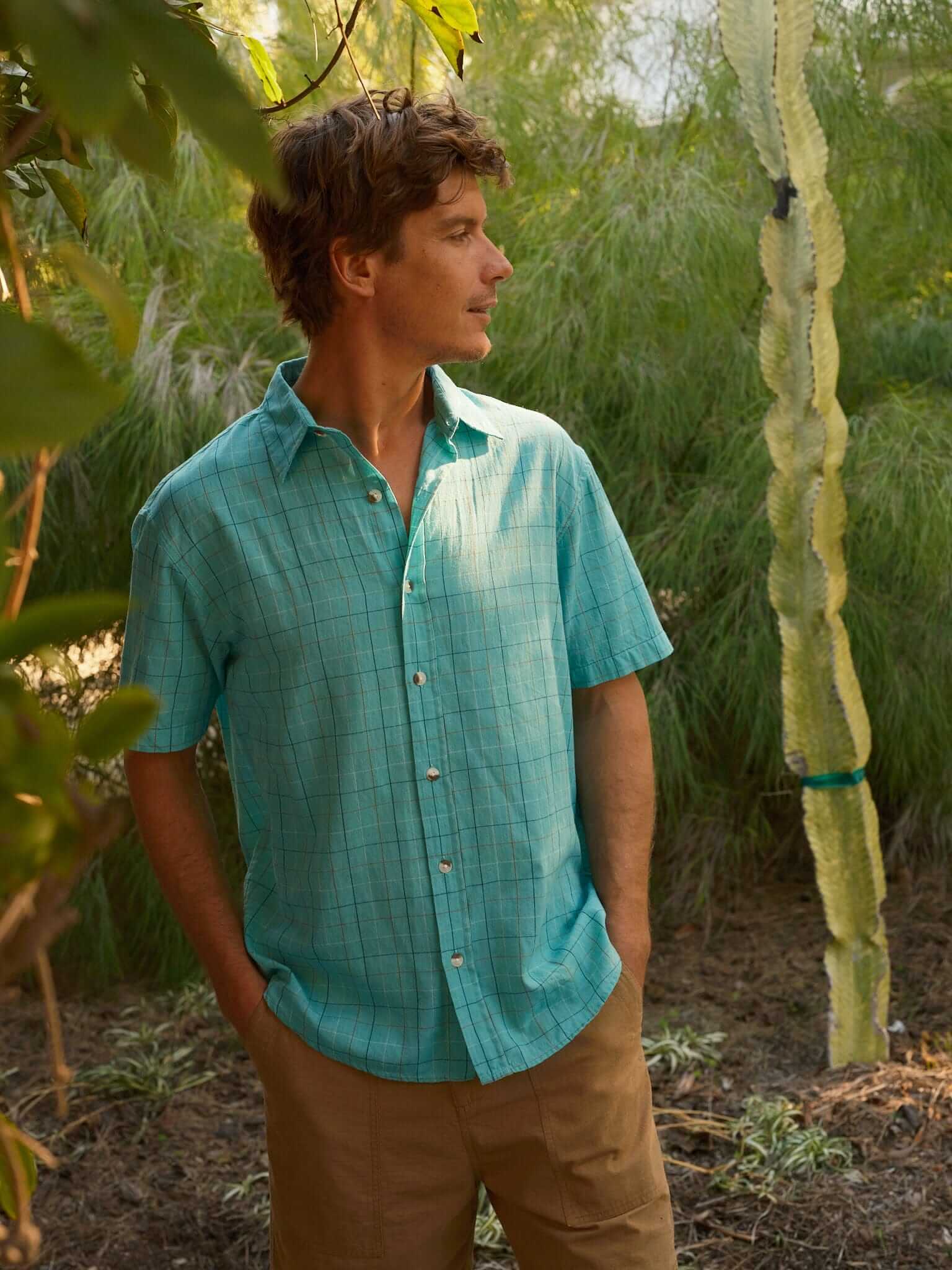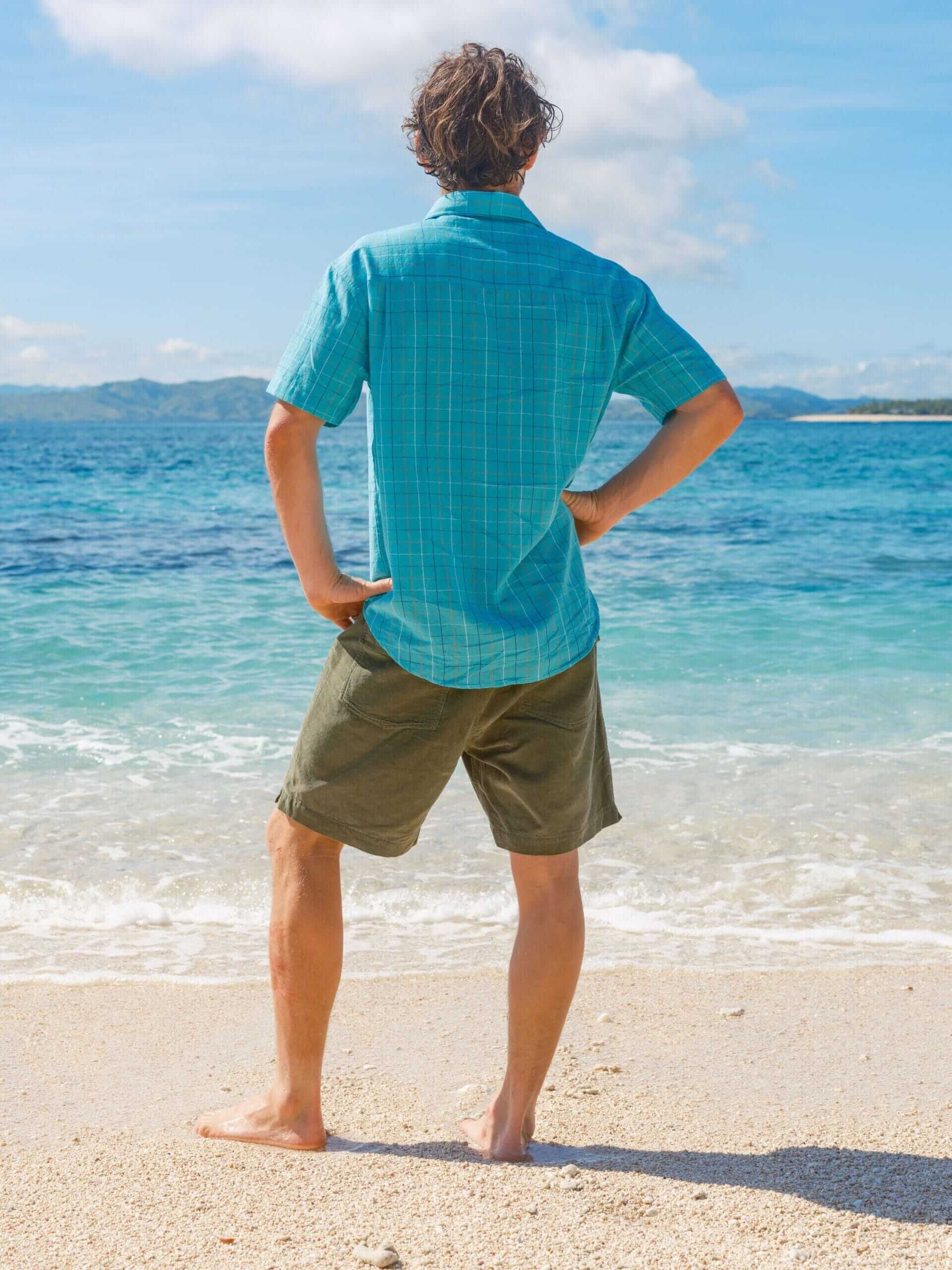 Das kurzärmelige Summer Shirt in Türkis erinnert an die 1980er, an Urlaub in Italien und tropische Sommernächte. Es steht jedem Freizeit-Skipper gut und ist dank seinem leichten Stoff aus reiner Baumwolle äusserst angenehm zu tragen.
