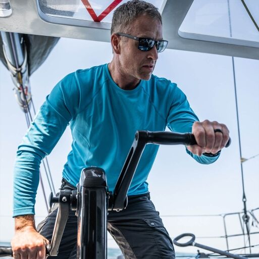 Das Adelphi-Longsleeve ist aus recyceltem Polyester hergestellt. Das Material ist antibakteriell und feuchtigkeitsregulierend und bietet UPF 50+. Es ist ideal für lange, heisse Tage auf dem Wasser, an denen man sich beim Segeln oder Fischen vor der Sonnen schützen muss. Dank der körpernahen, schlanken Passform, passt gut eine Schwimmweste drüber. Sobald es etwas kühler wird oder die Sonne untergeht, kann auch eine Jacke drüber gezogen werden.