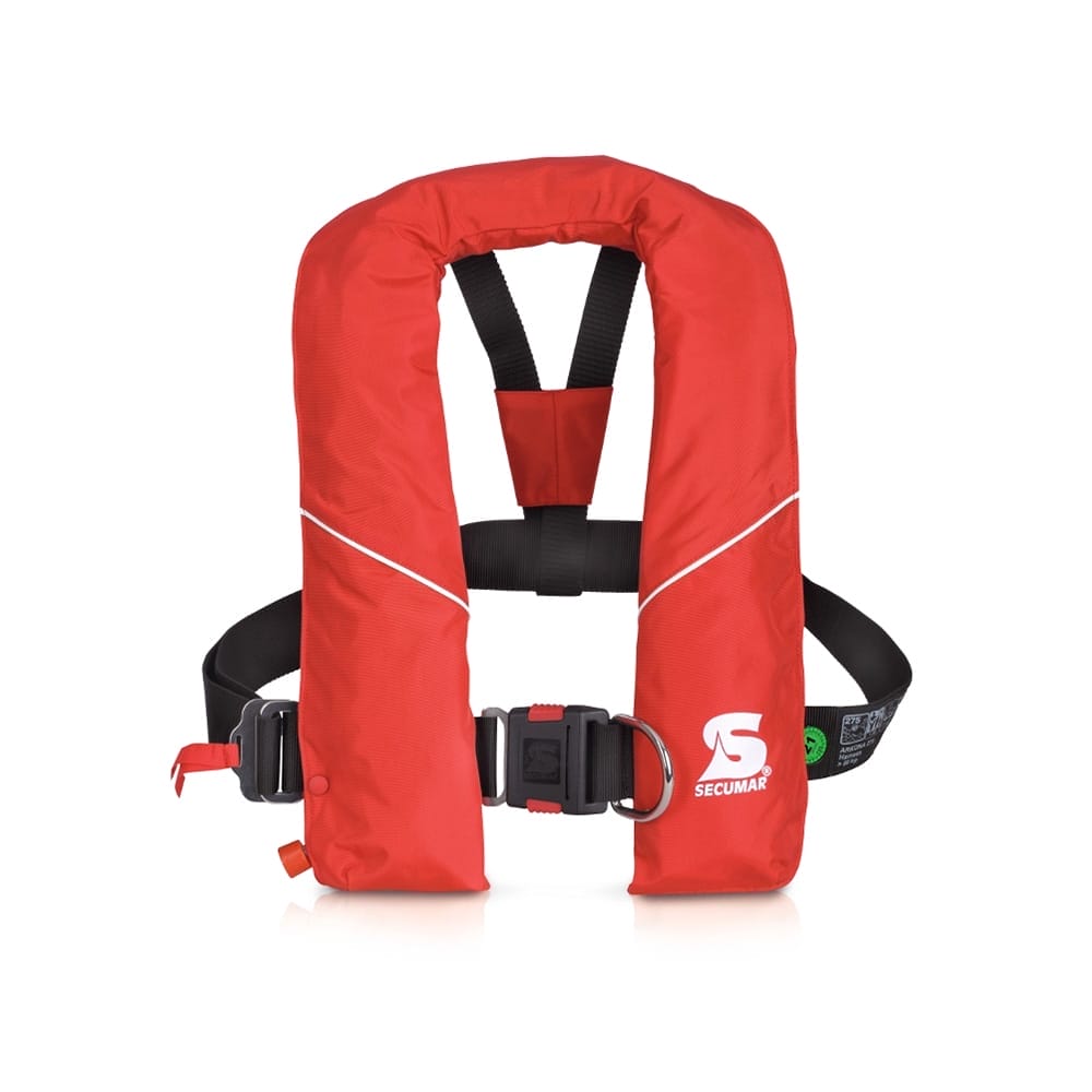 Nachdem die Rettungsweste aufgeblasen ist, justiert sich der Rückengurt automatisch und sichert so einen optimalen Sitz. Eine seitliche Verstellmöglichkeit erlaubt das einfache Lösen.