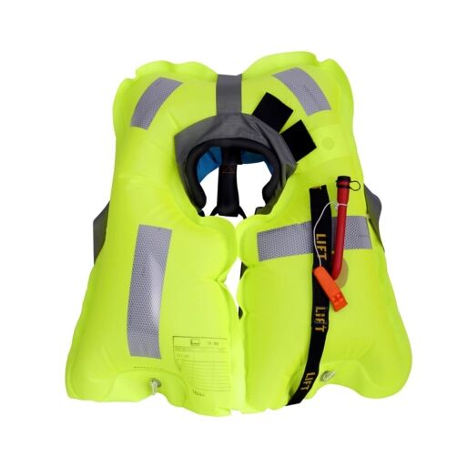 Diese eng gefaltete Rettungsweste besitzt eine flache Nackenpartie mit Fleece und bietet dadurch viel Bewegungsfreiheit und Komfort. Nachdem die Rettungsweste aufgeblasen ist, justiert sich der Rückengurt automatisch und sichert so einen optimalen Sitz. Die ULTRA 170 kombiniert hohen Auftrieb mit Innovation: Die Weste bietet 165N Auftrieb und einen Schrittgurt, ein Inspektionsfenster zur Überprüfung der Einsatzbereitschaft, sowie einen Click-Verschluss zum einfachen An- und Ausziehen.